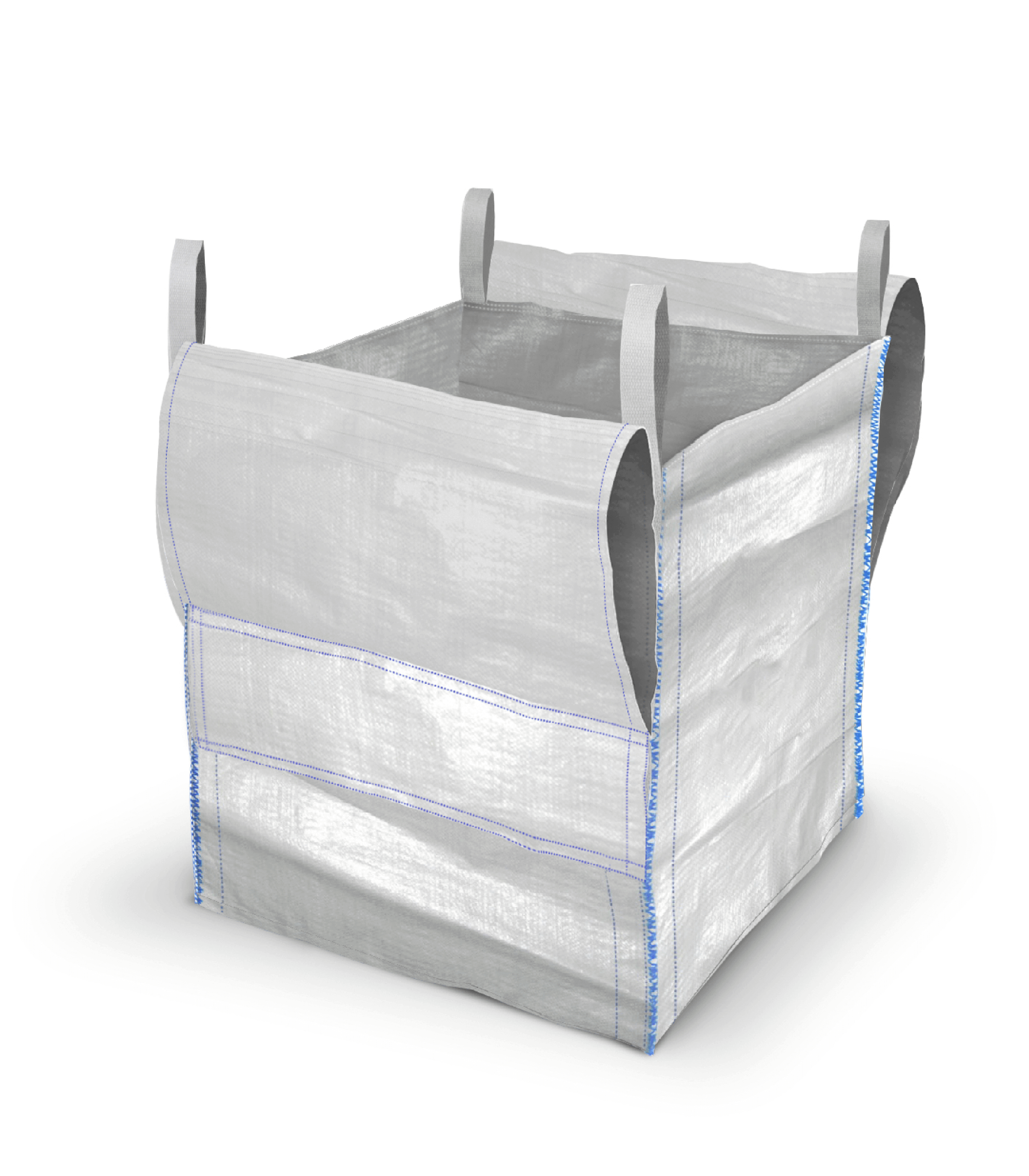 Our bulk bag features an open top, a flat bottom, and four stitched side seam handles for easy carrying. This Ton bag design allows hassle-free transportation or unloading without turning the bulk bags around.